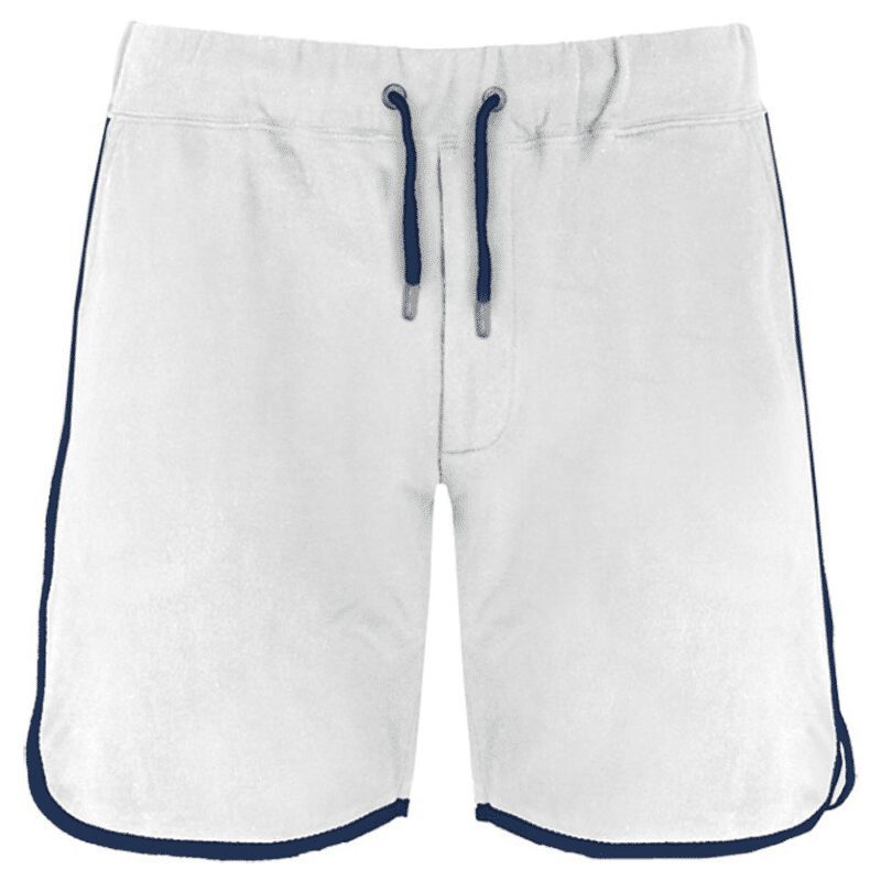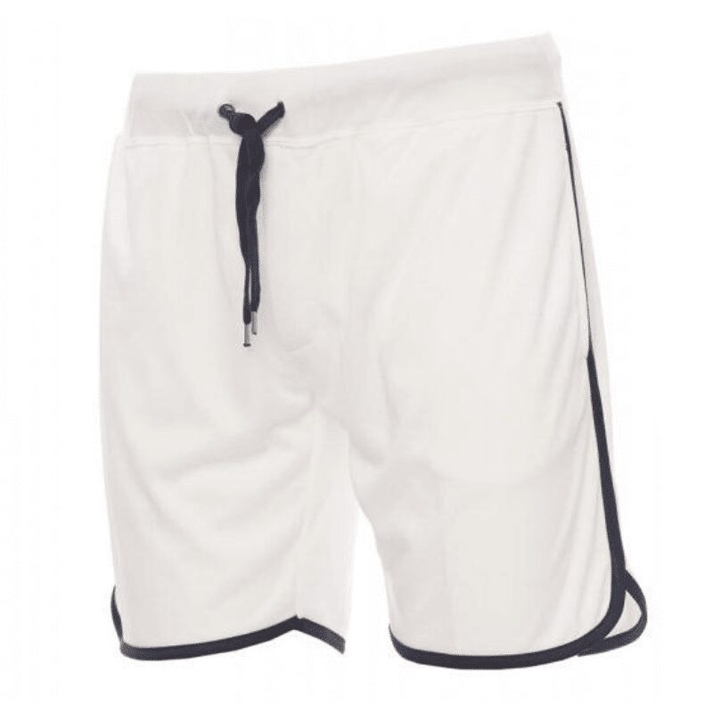 Bermuda unisex sportivo, coulisse in vita, patta con zip, due tasche laterali e profilo dei bordi a contrasto.