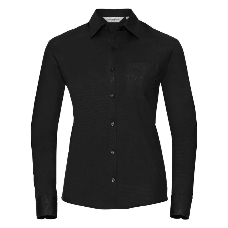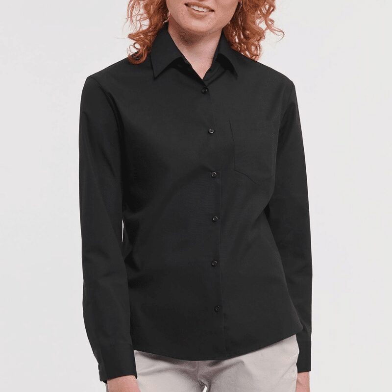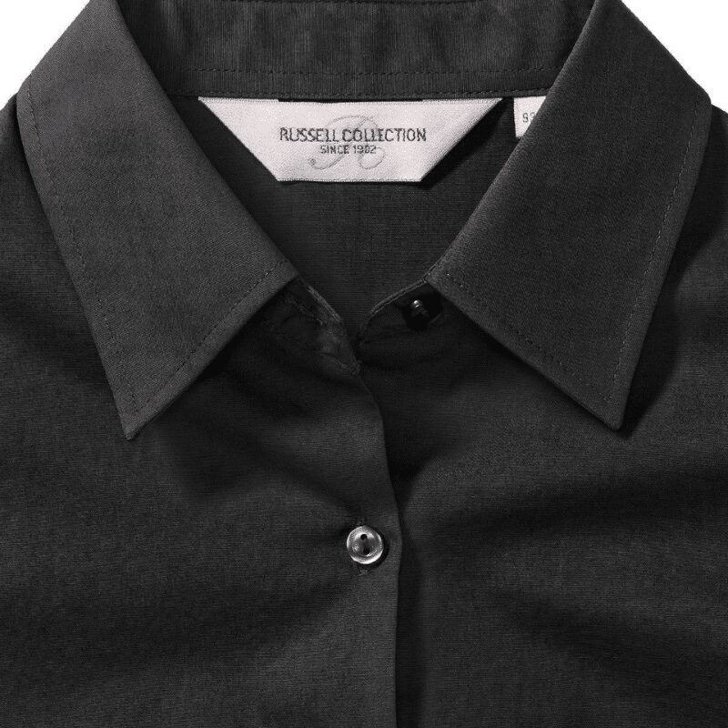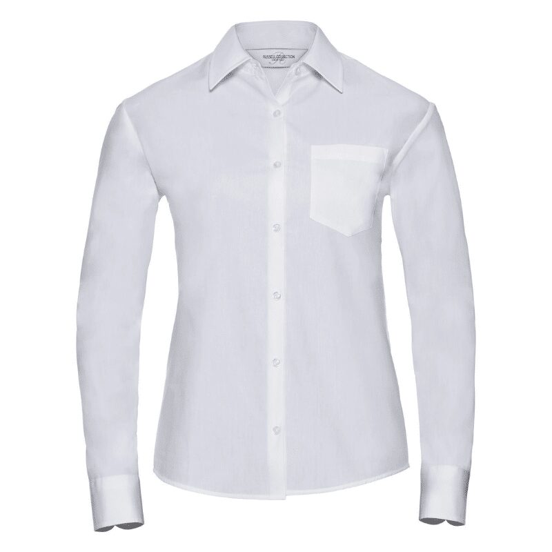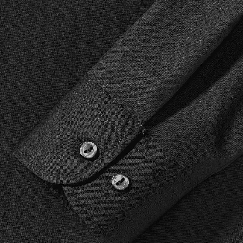 Camicia in popeline con colletto classico a un bottone, polsino stondato regolabile con due bottoni. Taschino a v lato cuore, Orlo stondato.