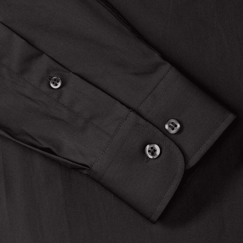 Camicia in popeline con colletto con stecche, polsino stondato regolabile con due bottoni. Taschino lato cuore, orlo dritto. Bottone di riserva.
