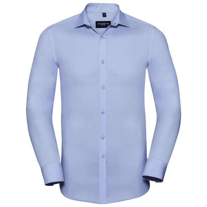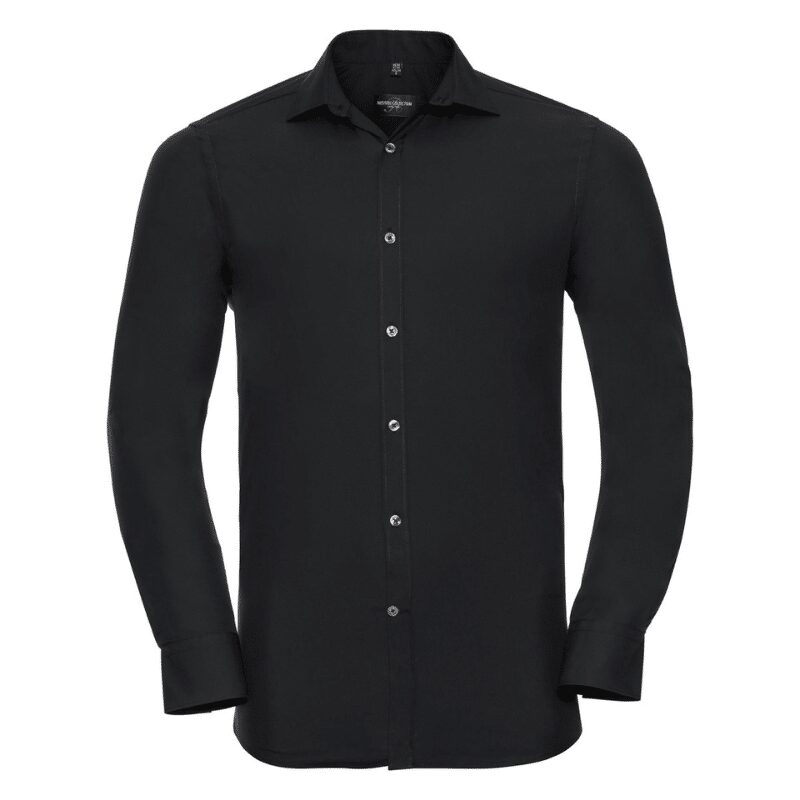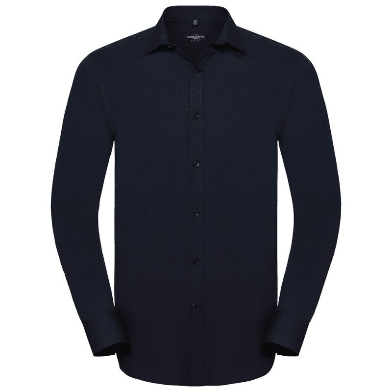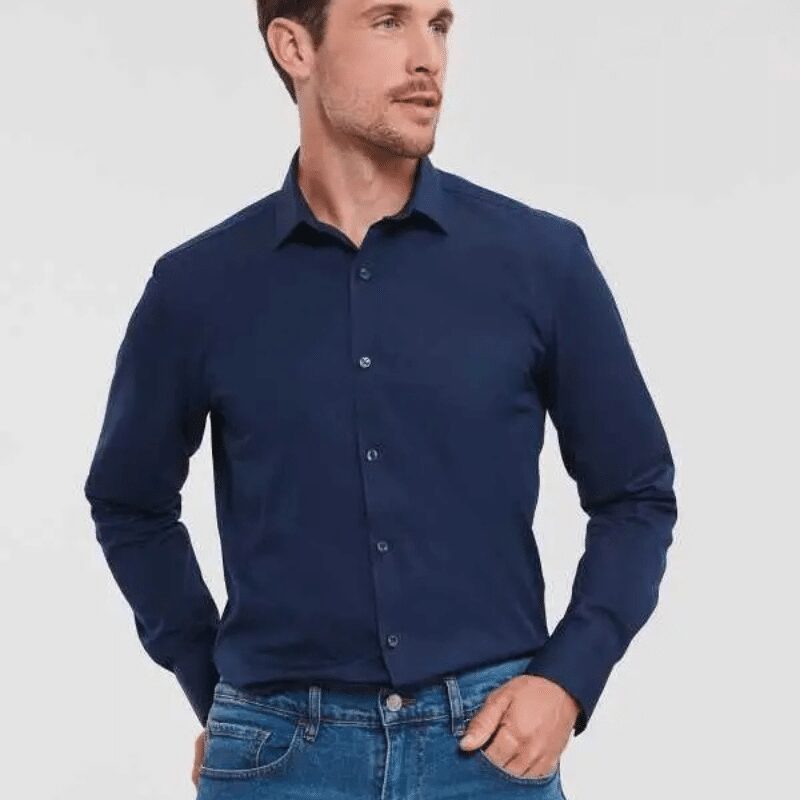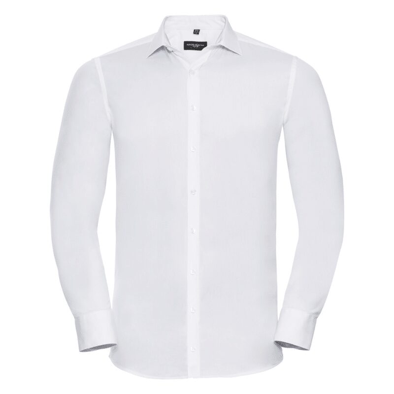 Camicia elasticizzata con pince sul retro, pattina stretta e polsini squadrati, controllo dell’umidità.