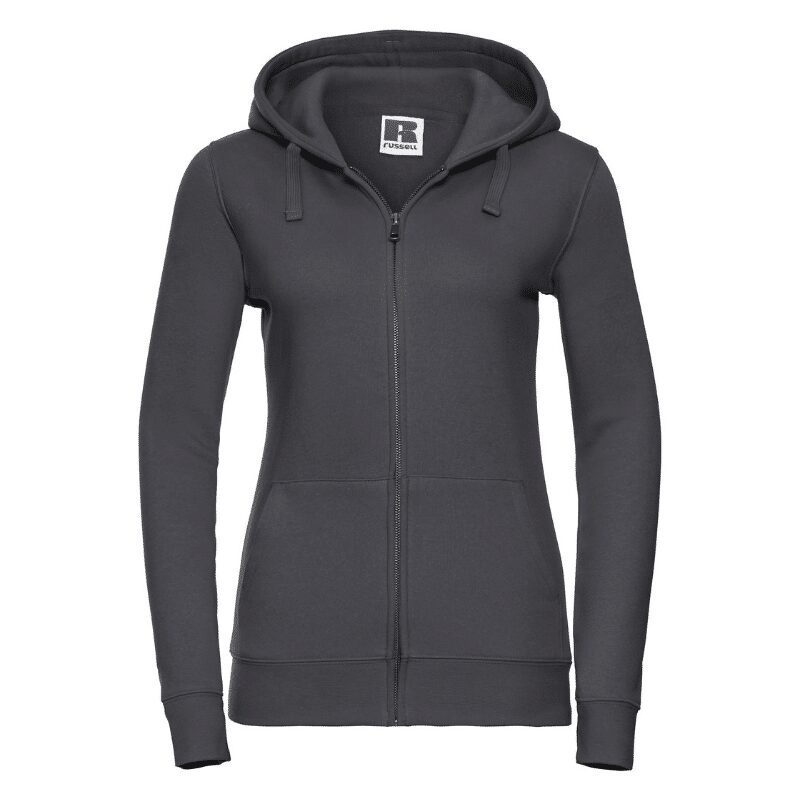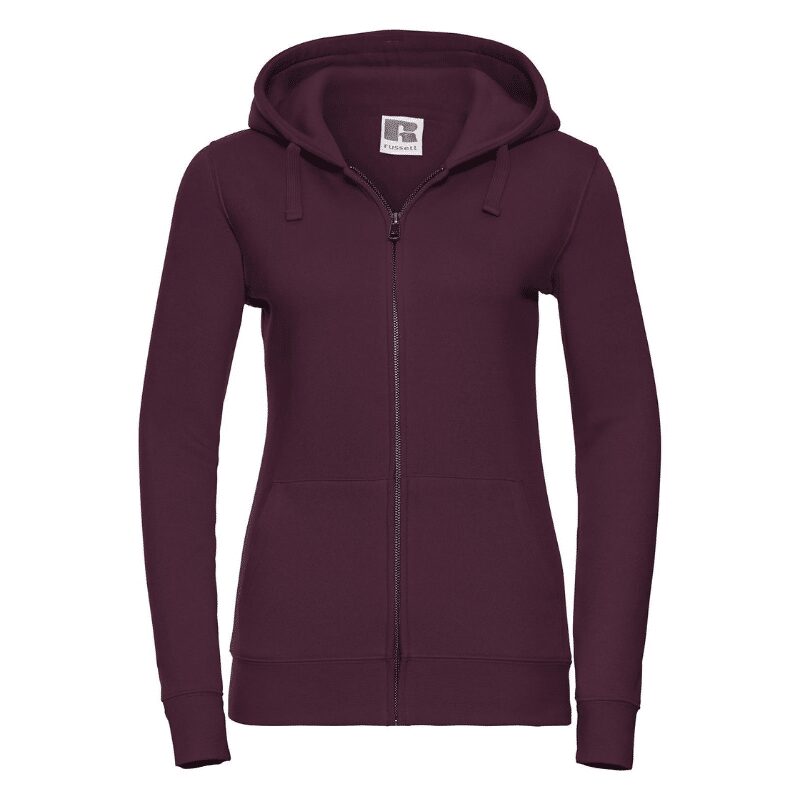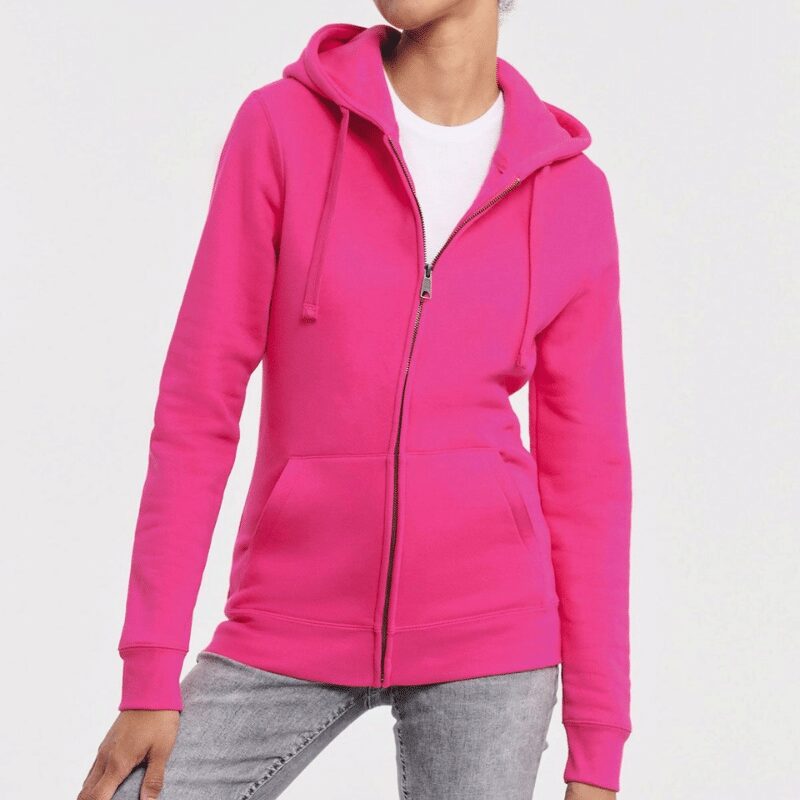 Felpa con cerniera, maniche set-in, tasca a marsupio, nastro di rinforzo al collo, felpata internamente, cappuccio a doppio strato con cordoncino piatto, passanti per cuffie, struttura con cuciture laterali.