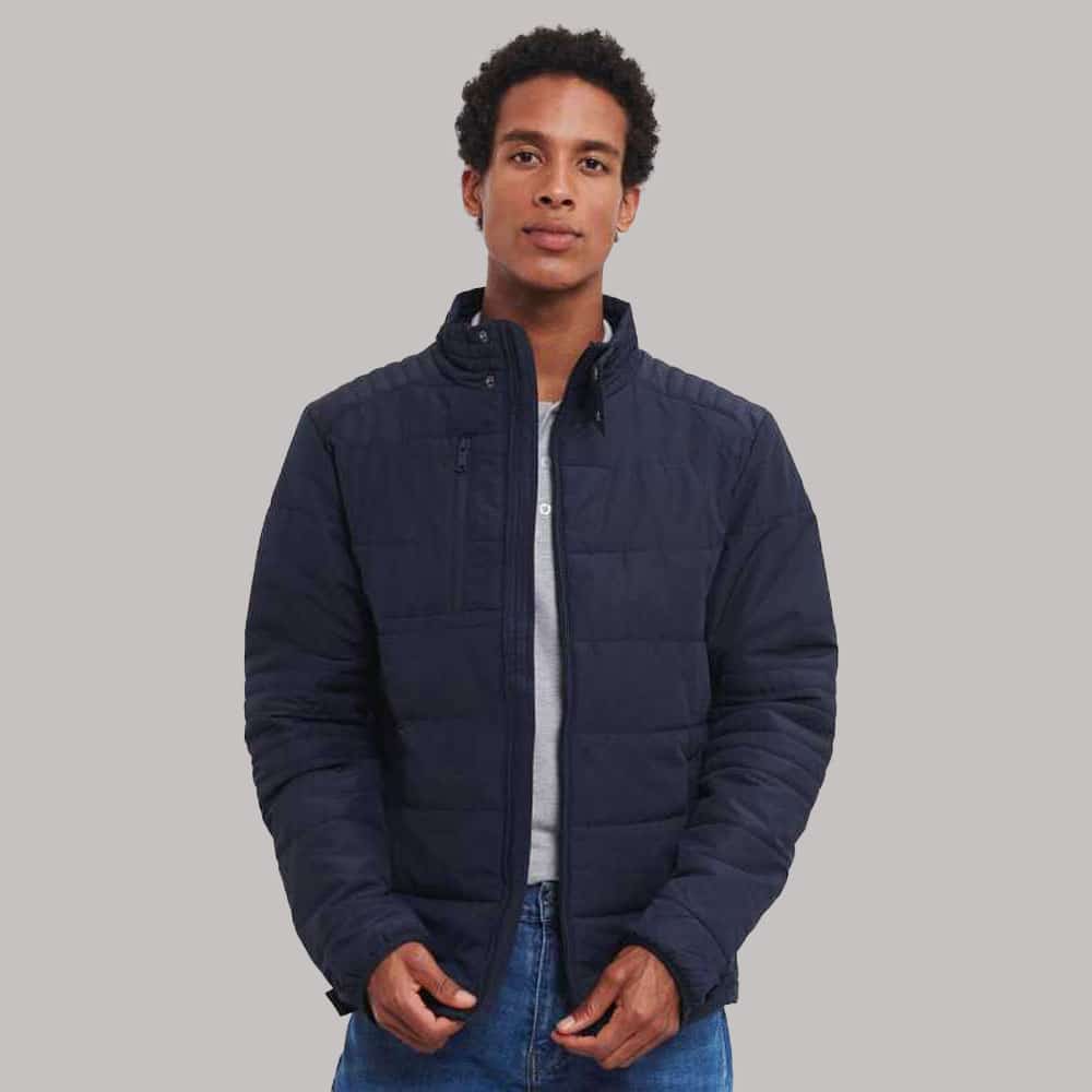 Tessuto DWR ad alte prestazioni trattato con Aquapel di Nanotex,senza fluoro e PFC Giacca da uomo con imbottitura ecologica di Dupont Sorona. Taglio moderno. Collo montante con 2 bottoni a pressione e pattina frangivento interna per la protezione dal vento, tasca interna con zip, pattina decorativa per la manica con bottone a pressione. Accesso discreto per la decorazione sul lato sinistro interno del torace.