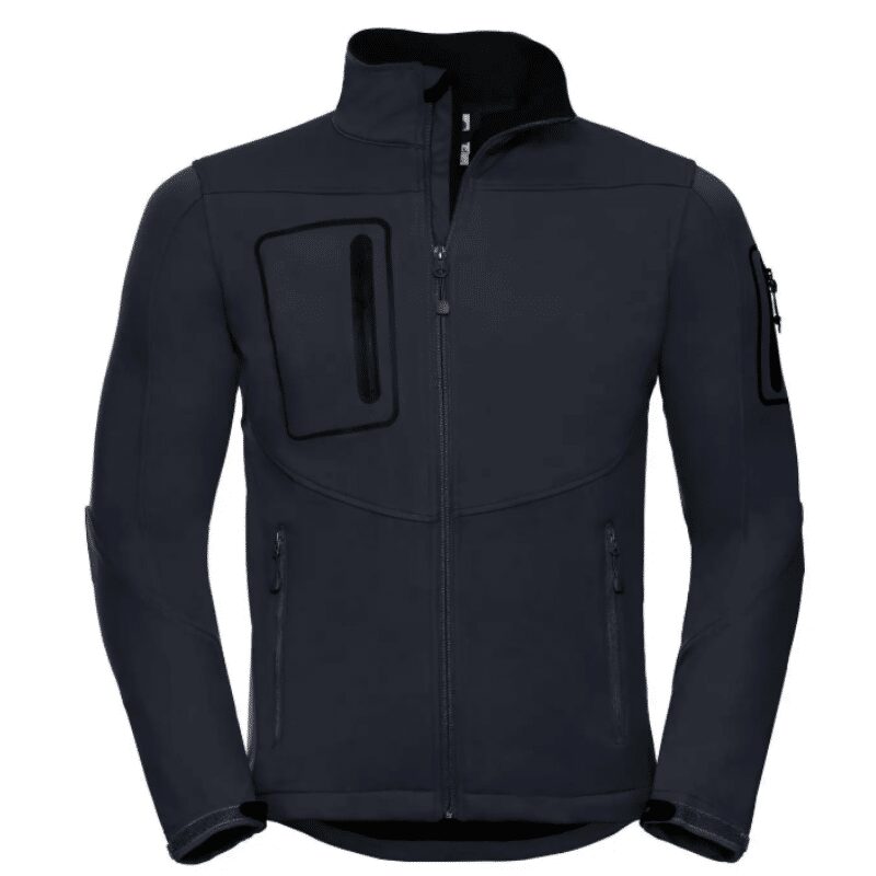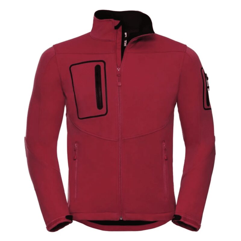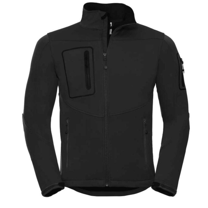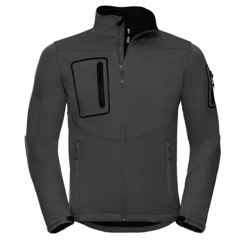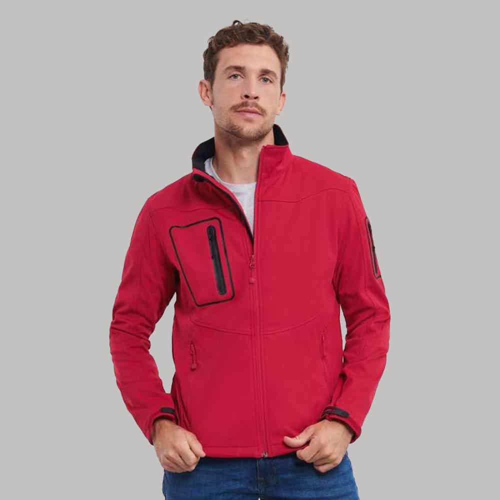 Giacca in softshell a triplo strato, morbida al tatto, impermeabile e traspirante, tessuto elastico.