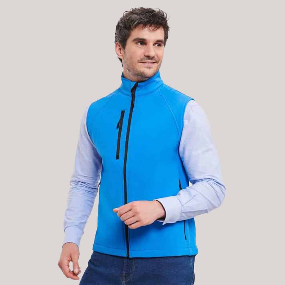 Giacca smanicata a 3 strati in softshell, traspirante, resistente a vento e acqua. Tasche laterali e sul torace con rivestimento interno. Lavabile a 40°C (non usare ammorbidente).