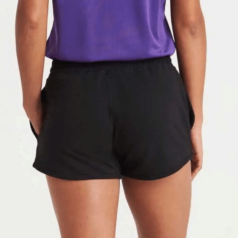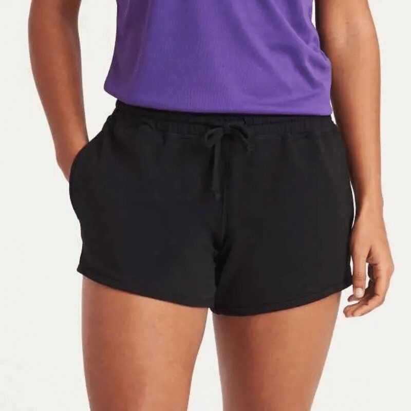 Pantaloncini sportivi da donna con vita elasticizzata, regolazione con coulisse, tasche laterali.