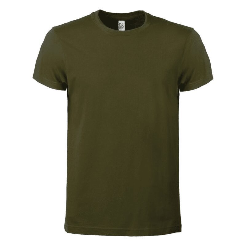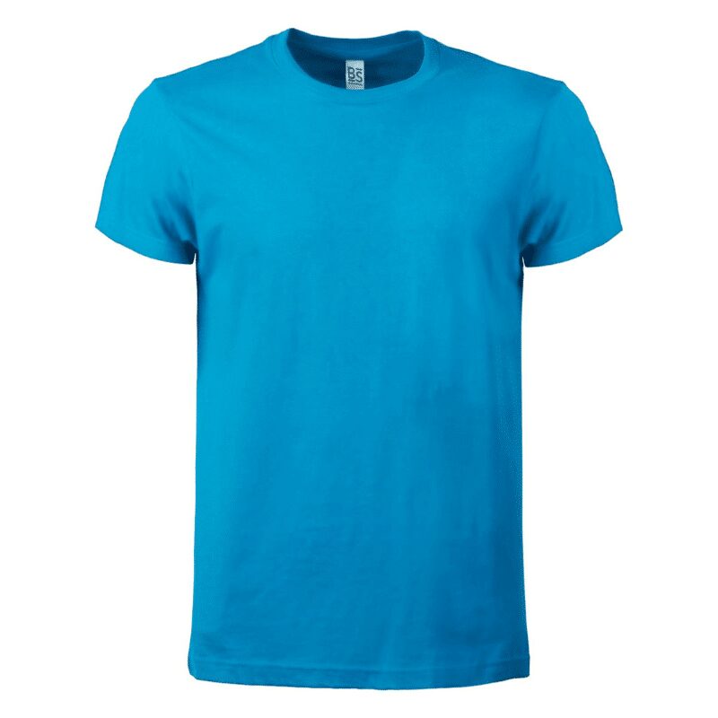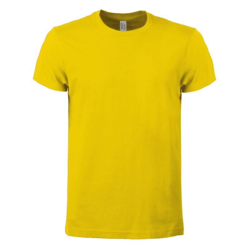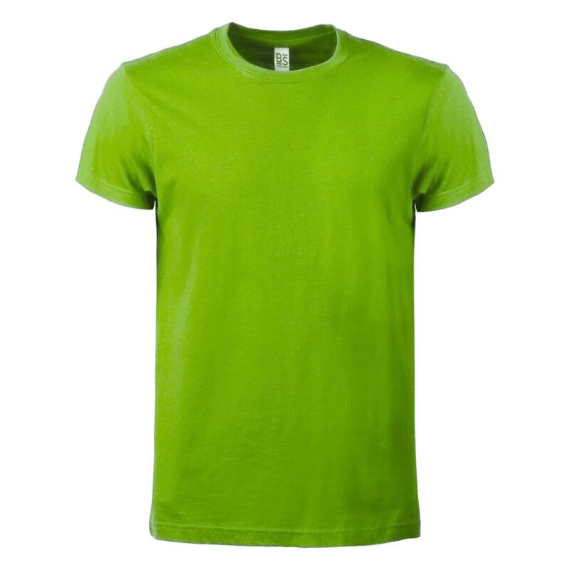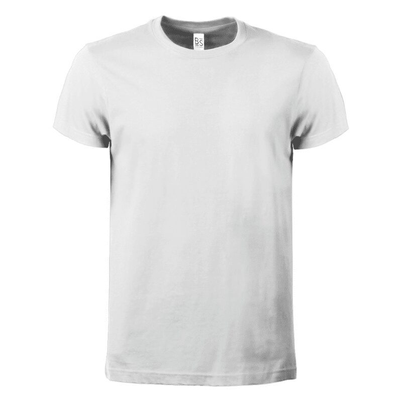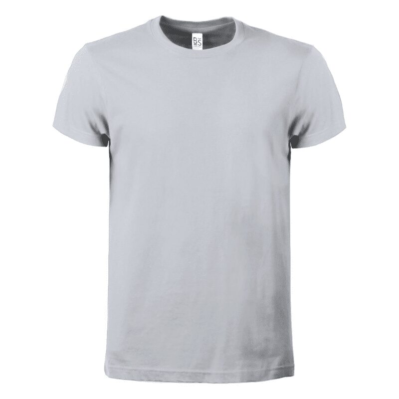 T-shirt manica corta, tessuto ring-spun single jersey, collo basso con cucitura a doppio ago, parasudore, struttura con busto tubolare. Etichetta strappabile.