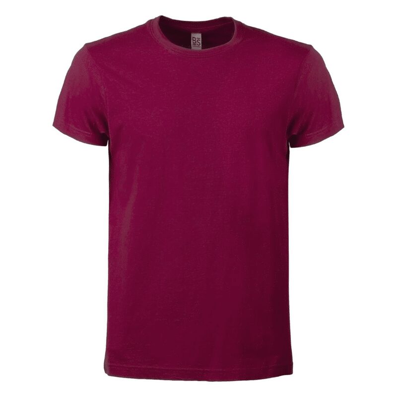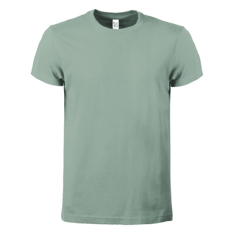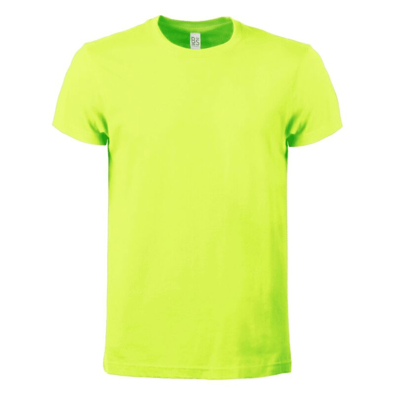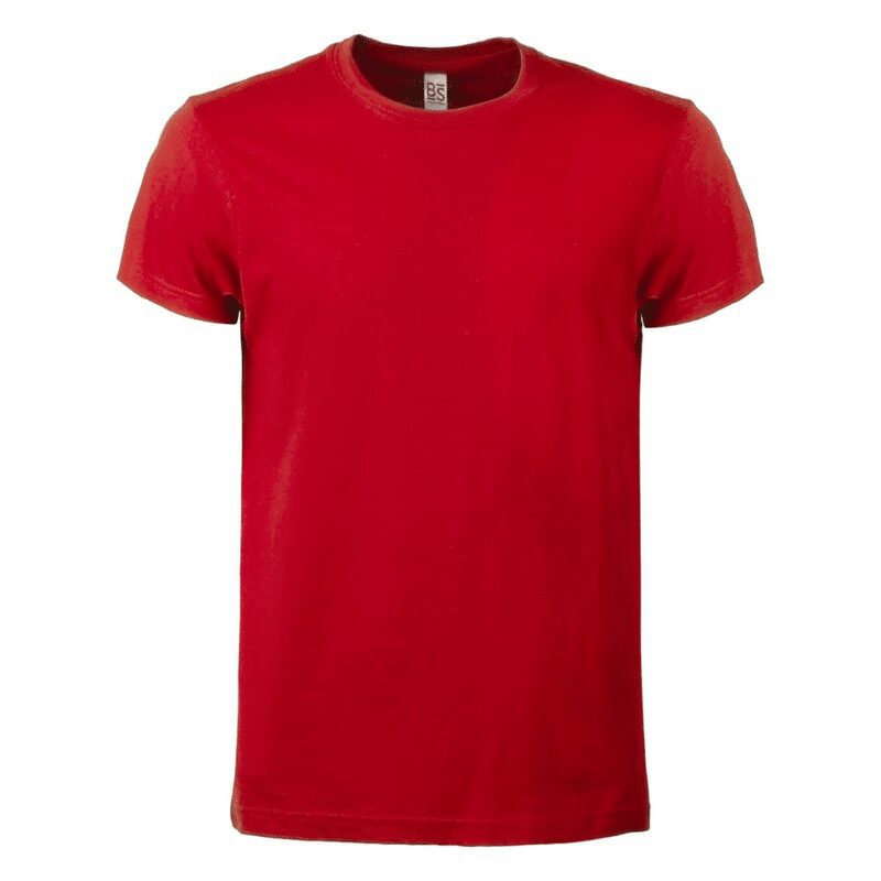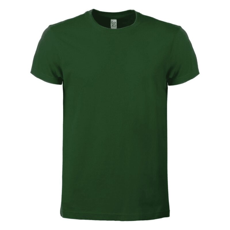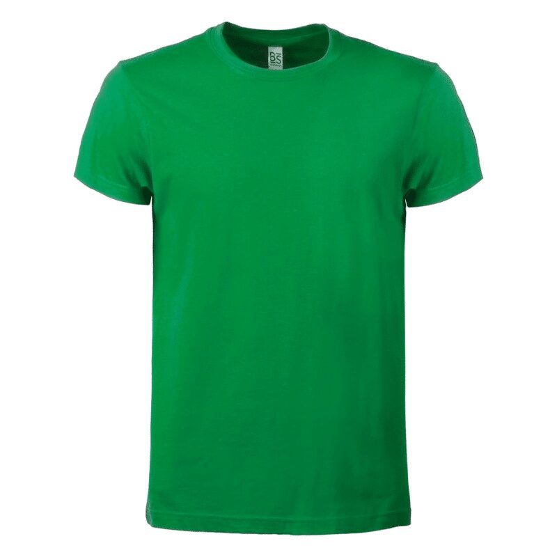 T-shirt manica corta, tessuto ring-spun single jersey, collo basso con cucitura a doppio ago, parasudore, struttura con busto tubolare. Etichetta strappabile.